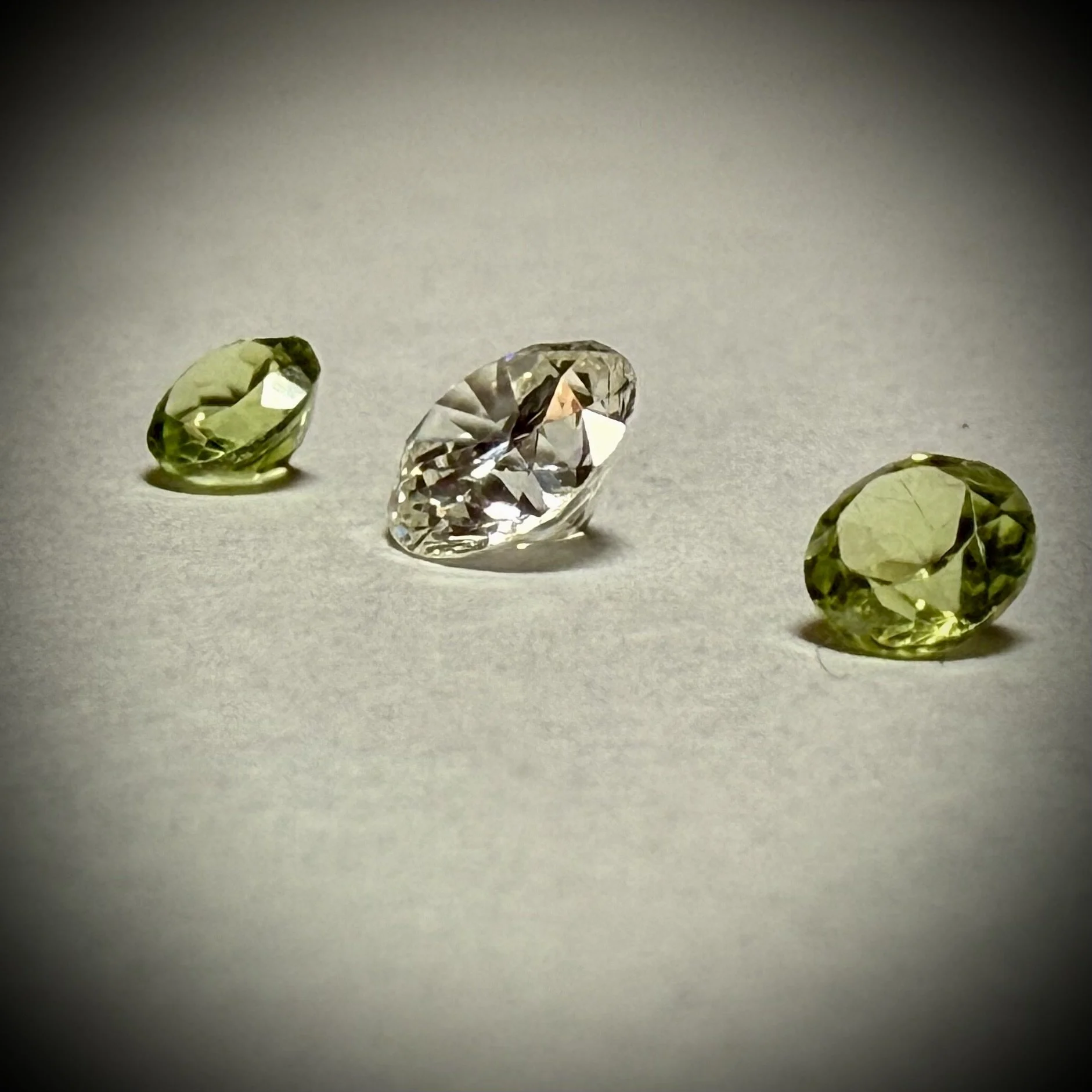 The center diamond and peridot stones from the ring